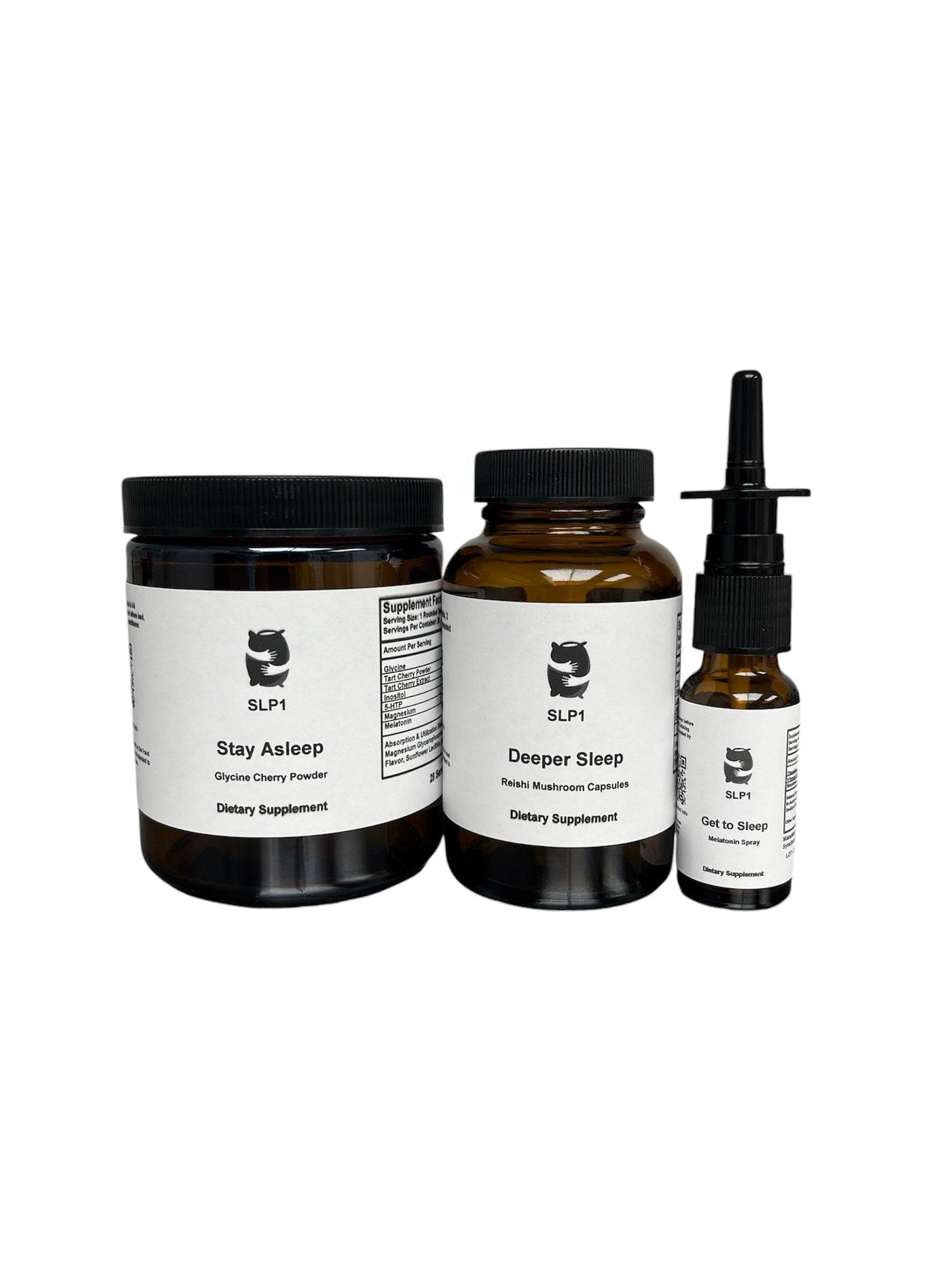 15-30 minutes before bed, take 2 sprays of SLP1 Get to Sleep Spray. This will reduce sleep latency and have you dreaming in shortly after your head hits the pillow.